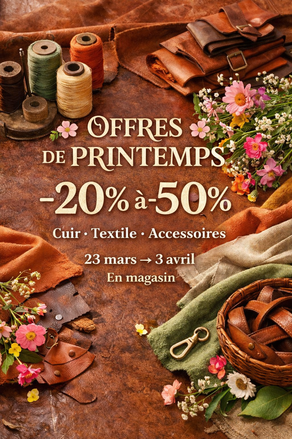 Cuirs, textiles et matières à travailler : profitez de cette période pour choisir des supports de qualité, adaptés à vos projets de création, de transformation ou de personnalisation.